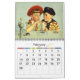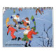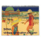 Calendario de ilustracion vintage de 12 meses con niños jugando y divirtiéndose.
