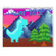 Ilustración divertida de dinosaurio pixelado - Calendario de dos páginas estilo estaciones coloridas; Este divertido diseño nostálgico presenta arte pixelado de un dinosaurio en la naturaleza. Hay montañas, abetos y nubes en un cielo colorido. Al frente, fuente pixelada "START" y "20XX" para el comienzo del año nuevo y en la parte trasera fuente pixelada "GAME OVER" para el final del año, he utilizado una paleta de colores llamativos para darle al arte un aspecto estético de videojuegos de los 90.