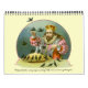 Historias infantiles de ilustracion de época y rimas infantiles diseñan el calendario. La portada es de Jessie Willcox Smith donde aparece la madre gansa con un gorra con dos adorables hijos, un niño y un chica, hermano y hermana bajo sus alas. Dentro hay personajes de la pequeña Miss Muffet, Humpty Dumpty, Cantando una canción de seis alambres, See Saw Margery Daw, Georgie Porgie y Mary Had a Little Lamb.