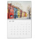 The image shows an illustration of a small, picturesque town at night or dusk.