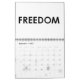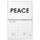 este calendario contiene palabras como: VIDA, ESPERANZA, PAZ, LIBERTAD, y imágenes de signos de la paz y de señales.