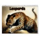 Calendario con doce imágenes de leopardos cazando y luciendo feroz.
