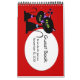 Dulce libro de boda hecho en rojo y negro, con adorables gráficos personalizados de una linda pareja de gatos negros, en un fondo rosado. Un área de texto ovalado en blanco tiene texto en negro personalizable listo para personalizar para su boda. Páginas alineadas en el interior para que sus invitados puedan iniciar sesión. Excelente con nuestros productos bodas de gatos negros.
