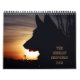 Las fotografías asombrosas de su raza preferida, el perro de pastor alemán, adornan las páginas de ésta de un calendario bueno.  Página después de la página de fotos imponentes.  ¡Éste sería el regalo perfecto para el amante del pastor alemán en su lista!