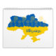 Mapa de Ucrania decorado con girasoles y tipografía estilizada con escritura a mano en colores de bandera ucraniana amarillo y azul