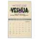Este calendario ofrece el nombre, "YESHUA" (el nombre hebreo de Jesús). El calendario incluye 12 imágenes de YESHUA con nombres o títulos y las escrituras asociadas a cada uno. -----------------------------------------------------------------------------------------------