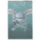 Mezclador de hormigón azul-gris con alas, pickaxe y pala.