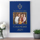 A family photo calendar with an elegant royal blue and gold cover with a vintage air.