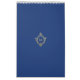 The back cover has just the golden monogram in crest in the center, on navy blue background.
