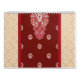El diseño muestra un patrón de tela muy bien detallado. Aquí hay un desglose de sus elementos: ・ Diseño central: un color rojo profundo o marrón con intrincados patrones dorados y motivos que se parecen al bordado tradicional. ・ Paneles de flanco: Dos paneles más amplios de fondo crema o beige claro, adornados con patrones florales más pequeños y repetitivos en oro. ・ Borde inferior: diseños dorados complejos sobre un fondo rojo similar, enmarcados por líneas delgadas de adornos en rosa y oro. ・ Parte superior: Forma semicircular que da a entender que se trata de la línea del cuello de una prenda. Este diseño es simétrico y presenta características típicas de los textiles del sur de Asia o de la India, lo que lo hace interesante por su relevancia cultural y artesanía en el diseño textil