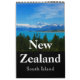 Paisajes escénicos de la Isla del Sur de Nueva Zelanda en un calendario único de cualquier año, completamente de personalizable. Disponible durante cualquier año y en una variedad de idiomas y configuraciones de vacaciones. Recuerde seleccionar el año elegido en la barra lateral antes de añadir al carrito. La Isla del Sur o Te Waipounamu es la más grande de las dos islas principales de Nueva Zelanda, y la otra es la Isla del Norte, más pequeña pero más poblada. Está bordeada al norte por el estrecho de Cook, al oeste por el mar de Tasmania y al sur y al este por el océano Pacífico. La Isla del Sur tiene una superficie de 150.437 kilómetros cuadrados y está influenciada por un clima templado. La isla del sur de Nueva Zelanda es famosa por sus montañas, lagos y glaciares, campos de esquí y rutas de senderismo. Dividido por la cordillera de los Alpes del Sur, alberga el Monte Cook de Aoraki y varios parques nacionales.