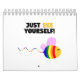 Una colorida abeja de orgullo gay con el texto "Just bee you".