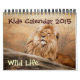 En el calendario infantil - 2015 - Vida salvaje se pueden encontrar muchos animales diferentes como jirafa, león, lagarto, rinocerontes, elefantes, caimán, flamingo, iguana, oso koala, búho, tarantula... El calendario tiene texto de personalizable en la portada y también se agregan festividades y eventos en EE.UU. y Canadá.