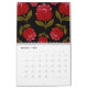 Calendario Patrón sin foco de rosas rojas sobre fondo negro
