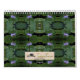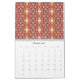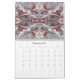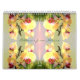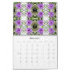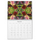 Este calendario colorido presenta patrones hechos de fotografías originales de flores, plantas, árboles y otros temas de la naturaleza. Hay petunias moradas, geranios rojos, conchas rosadas, hojas verdes y otros colores hermosos y formas complicadas. El asunto de cada patrón se etiqueta en su propia página.
