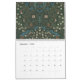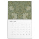 Todas las imágenes de este calendario son patrones creados por el diseñador textil del siglo XIX, William Morris - hay catorce en total, incluyendo la portada y la cubierta trasera. Los patrones incluidos en este calendario aparecen en orden consecutivo y son los siguientes: (Portada frontal) Rosa y Rosa, Pimpernel, Marigold, Daisy, Violet y Columbine, Peacock y Dragon, Saint James Palace, Rosa, Brer Rabbit, Blackthorn, Floral Embroidery, Jasmine, Bullerswood, y Corncockle (cubierta posterior).