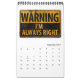 Calendario PELIGRO RÓTULOS Gracioso Advertencia Precaución Ró