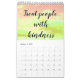 Calendario pequeño de una sola página, calendario positivo blanco