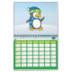 Un pequeño pingüino personalizado con gorra y bufanda caminando sobre la nieve.