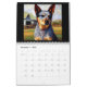 Calendario con doce imágenes de perros de ganado australianos en varios estados de juego y descanso.