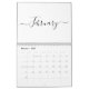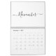 Simple y moderno mes de escritura blanco y negro personalizado minimalista calendario elegante. Texto del guión moderno completamente en personalizable sobre fondo de color sólido y plano blanco. Todos los colores son editables. Compruebe que el resto de la colección contiene elementos de coincidencia y coordinación adicionales.