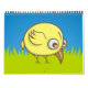 Un lindo y gracioso personalizado de pájaros amarillos sobre el fondo del césped y el cielo.