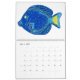Todos los pescados en este calendario vienen de mis edredones originales del arte y las técnicas mixtas trabajan. Cada uno fue creada usando telas del batik y embellecida con las pinturas acrílicas, los hilos del bordado, los hilados, las gotas y las lentejuelas.