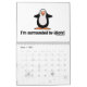 Pingüinos divertidos. Cada página tiene un diverso dibujo gráfico del dibujo animado de pingüinos con refranes divertidos. Garantizado para poner una sonrisa en su cara y para hacer que usted ríe cada mes del año. El texto puede ser cambiado/ser modificado para requisitos particulares. Continúan tan, los amantes del pingüino, modifican un calendario para requisitos particulares de que usted goce durante todo el año con estos pingüinos lindos y tontos.
