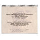 Enero - Leda y Febrero Cisne - Esbozo de ingeniería de una rueda para un vehículo a motorMarzo - Vitruvian ManApril - Baptismo de Cristo (detalle de ángel) Mayo - Treadmill Powered Crossbow June - La batalla de Anghiari Julio - Mona Lisa Agosto - Virgen de las Rocas Septiembre - Esbozo de anatomía humana, brazos y hombros Octubre - Leonardo da Vinci Self Portrait Noviembre - Un Ángel en verde con una Vielle Diciembre - La Última Cena