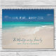 ¡El paraíso en un calendario! Añada un toque especial a este elegante calendario personalizado del año reemplazando las doce fotos tropicales de la playa con sus favoritos. Esta plantilla de calendario de fotos de dos páginas incluye las doce fotos de la parte posterior para facilitar la referencia; todas están enmarcadas en color turquesa y se muestran sobre un fondo artístico de olas. Personalice fácilmente el título del calendario (que dice: "Vivir más, preocuparse menos" ), nombre y año usando las plantillas proporcionadas. Cada mes, una palmera tropical artística con cocos adorna la página.