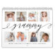 Envía un hermoso regalo personalizado a tu Grammy que ella apreciará. Calendario especial de collage de fotos de nietos y familiares personalizados para mostrar sus propias fotos y recuerdos familiares especiales. El diseño de la portada presenta un sencillo diseño de cuadrícula de 8 fotos con "Grammy" diseñado en un hermoso estilo de escritura negra manuscrita. Cada foto está enmarcada con un simple marco de color dorado. Personalizar con nietos y nombres de familiares. Cada mes presenta una sola imagen de tamaño completo con el mes escrito en elegante caligrafía negra mostrada ligeramente sobre cada foto.