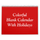 Calendario rojo en blanco colorido con vacaciones