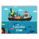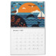 Colorful illustration of a port city with sailboats sporting red sails on a blue sea. The cityscape features vibrant buildings in yellow, blue, and red hues, and a prominent red and white striped lighthouse. The scene includes a few figures walking along the waterfront. In the background, rolling hills under a sky dotted with white clouds. The aesthetic is bold and simplified, with a modern, graphic style.