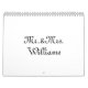 Sr. y Mrs. white y black personalizado personalizado nombre calendario elegante.