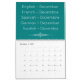 Organize your year with a global perspective using this sleek, multilingual custom wall calendar. Featuring the months of the year translated into English, French, Spanish, German, and Swahili, this minimalist teal black-and-white design blends sophisticated typography with practical functionality. Perfect for language learners, world travelers, or anyone looking to add a touch of international flair to their home or office. Fully customizable to suit your personal style or gifting needs.