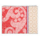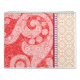 El diseño parece ser un diseño textil detallado, posiblemente destinado a ropa o tela. Aquí se presenta un desglose de sus elementos: ・ Característica central: Una franja ornamental vertical con intrincados patrones azules y blancos, que recuerdan al bordado tradicional o al trabajo de filigre. ・ Motivos de flanqueo: diseños simétricos tipo paisley en un tono más ligero a ambos lados de la tira central. ・ Fondo: un color rojo rico con un patrón elaborado y denso, añadiendo textura y profundidad. ・ Borde inferior: borde horizontal con elementos repetitivos similares a los de la tira central, dispuestos de forma lineal. Esta combinación de elementos decorativos sugiere que podría ser el diseño de una prenda de vestir como kaftan o túnica, que exhiba artesanía y artesanía cultural.