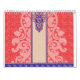 El diseño parece ser un diseño textil detallado, posiblemente destinado a ropa o tela. Aquí se presenta un desglose de sus elementos: ・ Característica central: Una franja ornamental vertical con intrincados patrones azules y blancos, que recuerdan al bordado tradicional o al trabajo de filigre. ・ Motivos de flanqueo: diseños simétricos tipo paisley en un tono más ligero a ambos lados de la tira central. ・ Fondo: un color rojo rico con un patrón elaborado y denso, añadiendo textura y profundidad. ・ Borde inferior: borde horizontal con elementos repetitivos similares a los de la tira central, dispuestos de forma lineal. Esta combinación de elementos decorativos sugiere que podría ser el diseño de una prenda de vestir como kaftan o túnica, que exhiba artesanía y artesanía cultural.