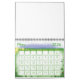 En el calendario en blanco verde con vacaciones para niños con alambre verde se puede encontrar texto de personalizable verde en la portada y se añaden eventos y vacaciones de los Estados Unidos.