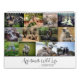Calendario con hermosas imágenes de la vida silvestre de cebras, gacelas, leones, gannets, hipopótamo, elefantes, cisnes negros, languras, paracaídas, rinocerontes, lemures y pingüinos (respectivamente)
