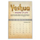 YESHUA, el nombre de Jesús, el calendario del Mesías. Este calendario mensual presenta el nombre "YESHUA" (el nombre hebreo/árabe de Jesús). El Calendario incluye 12 imágenes YESHUA con Nombres o Títulos y Escrituras asociados a cada una.