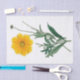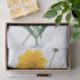 Papel seda blanco del calendula amarillo intrépido botánico de la impresión tan bonito con las cintas amarillas de la tela escocesa y los tejidos de coordinación.