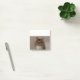 Publica notas con una foto de un gato calico. También hay espacio en blanco en el que escribir la nota cuando falta una pluma de tinta de color oscuro.