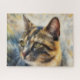 My original artwork is featured on this pretty cat puzzle, consisting of my original photograph of a calico cat, close of her face. I styled it with an illustrated oil pastel painterly technique for an artsy appearance. The size of this unique nature puzzle is 16” x 20”, and in the ‘challenging’ category, however you may size up or down as desired. A great gift for a cat lover or nature lover. Also great for a speed puzzle fanatic or puzzle lover.
