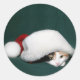 Gato de Calico con la cara pegada en una foto de gorra de Santa Claus