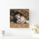 Reloj de pared - Macy, un joven gato calico de sangre completa, se ha subido bajo una alfombra pensando que se esconde, para jugar. ¿Sabías que sólo las mujeres de Calico tienen los tres colores (marrón, negro y blanco)? Los hombres de Calico solo tienen blanco y negro. ¿Buscando más impresiones o productos? Siéntete libre de visitar mi tienda: http://www.zazzle.com/timelessmomentsphtgy Esta foto fue tomada por Jennifer White con Timeless Moments Photography. Todas las imágenes tienen derechos de autor © Timeless Moments Photography/Jennifer White. Reserva de todos los derechos