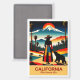 Celebra la calidez y la vitalidad de "California: dónde vive el sol" con este imán de viaje llamativo! Este cautivador imán de viajes cuenta con una mujer vestida con un vestido multicolor y un gorra parados al lado de un oso, ambos mirando un impresionante paisaje que mezcla palmeras y una montaña nevada, todo bañado en el cálido resplandor de una dramática puesta de sol. Con su estilo retro y surrealista, el arte encapsula maravillosamente el paisaje diverso y el espíritu vibrante de California, lo que lo convierte en un perfecto tributo al encanto del Golden State. Transforme sus momentos de viaje favoritos en keepsakes con este imán de viaje único, y convierta su refrigerador en una galería de recuerdos.