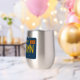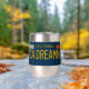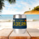 This stemless wine tumbler will take you back in time to the year 1969 with this retro-inspired California license plate design. Bold embossed-look yellow text with the custom tag number "CA DREAMN" pops on the blue contrast. The vintage style lettering, tag stickers and panhead screws bring a nostalgic vibe. Perfect for beach bums and lovers of vintage art, this insulated stainless steel tumbler will bring good vibes and distant memories to your wine time.