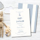 Si buscas una elegante y minimalista invitación a la ducha con un toque de color crema y azul polvoriento, esta invitación con tipografía azul claro, guión de estilo manuscrito para el nombre de la mamá, y diseño moderno de tipografía podría ser la respuesta. Una elegante franja en el reverso completa esta invitación que le permite añadir información del registro de regalos y rsvp sin estropear la elegancia del detalle en el frente. Un poco de blanco, fondo crema. Pruebe un tipo de papel/tarjeta texturizado para añadir lujo para su evento temático especial para bebés. Perfecto para una ducha de bebés con toques de azul polvoriento. También disponible para un chica con polvorientos rosas o neutros en verde menta.