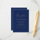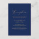 Esta delicada tarjeta de inclusión de recepción de color azul marino con caligrafía dorada es perfecta para una boda moderna. El diseño minimalista romántico presenta una tipografía amarilla dorada champán encantadora y elegante sobre un fondo azul marino con una apariencia limpia y simple. ¡Personaliza esta tarjeta de detalle con la información de tu recepción e incluye también la dirección de tu sitio web de boda!
