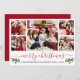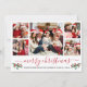 Moderna caligrafía Script 5 Photo Family Collage de fotos Merry Christmas Card incluye Navidades de acuarela Holly Berries - Guión rojo